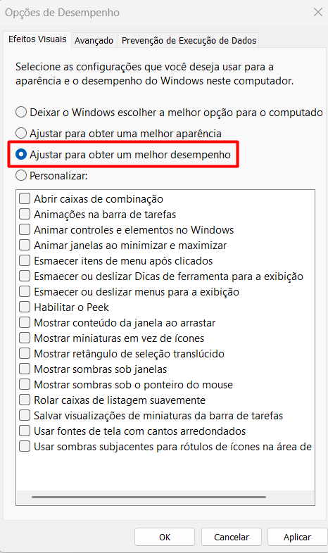 - Selecione “Ajustar para obter um melhor desempenho”.